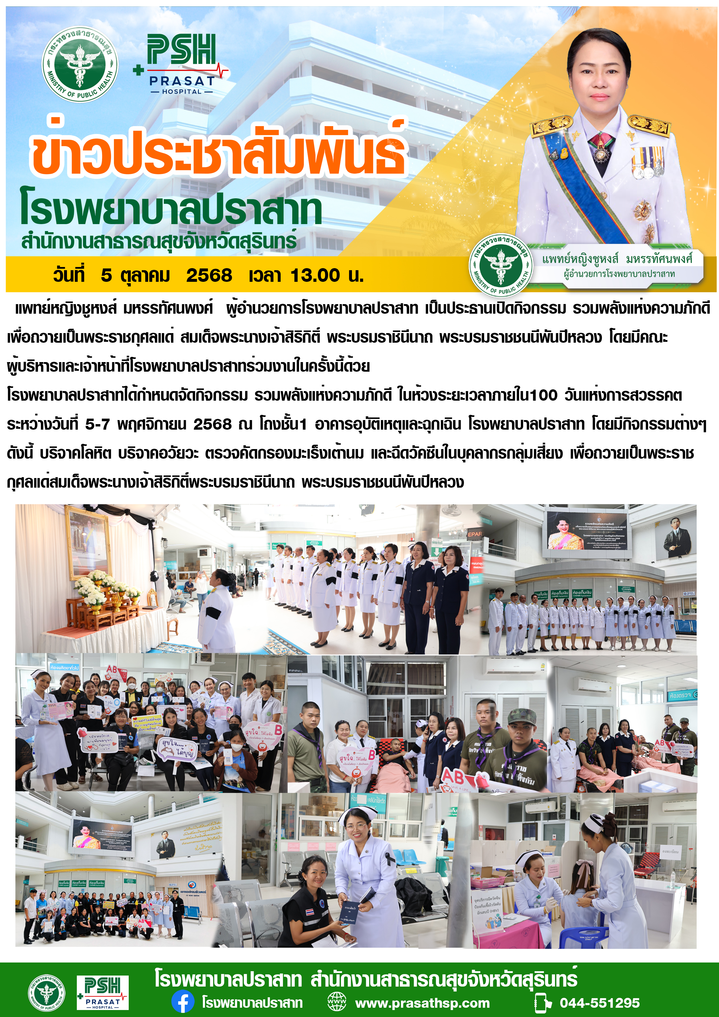 ประกาศโรงพยาบาลปราสาท เรื่อง รับสมัครบุคคลเพื่อเลือกสรรเป็นลูกจ้างชั่วคราว (รายวัน) ตำแหน่ง พนักงานเก็บเงิน และ พนักงานบริการ (รปภ)
