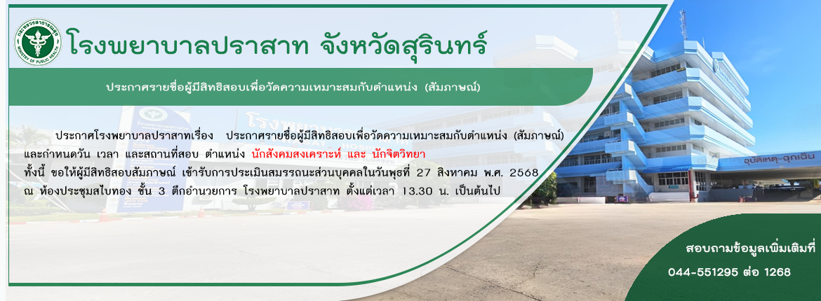 ประกาศรายชื่อผู้มีสิทธิสอบเพื่อวัดความเหมาะสมกับตำแหน่ง (สัมภาษณ์) และกำหนดวัน เวลา และสถานที่สอบ ตำแหน่ง นักสังคมสงเคราะห์ และ นักจิตวิทยา