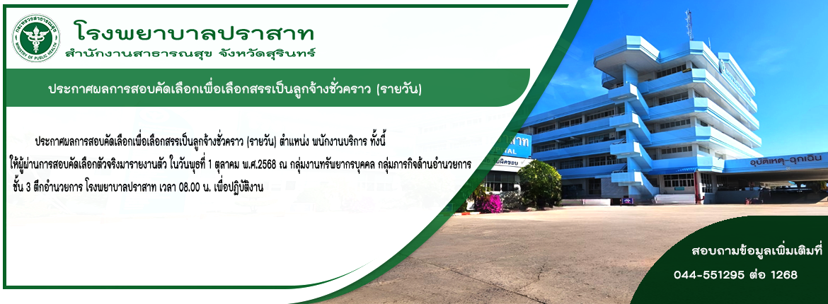 ประกาศผลการสอบคัดเลือกเพื่อเลือกสรรเป็นลูกจ้างชั่วคราว (รายวัน) ตำแหน่ง พนักงานบริการ
